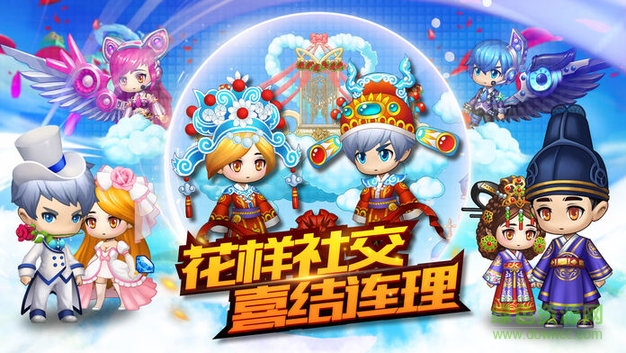 游戏中可以与小伙伴互送献花、派发红包、整蛊变身等花式社交,还可以与情投意合的他或她喜结连理、派发喜糖、花式虐狗~