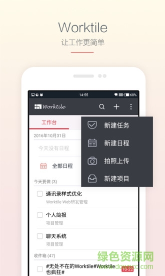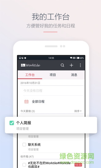 worktile个人版是专门为个人打造的一款工作项目管理的办公软件,通过这款软件可以实现更好更加方便快捷的管理工作,同时还能达成团队工作效果!喜欢的朋友可以到绿色资源网下载体验哦!
