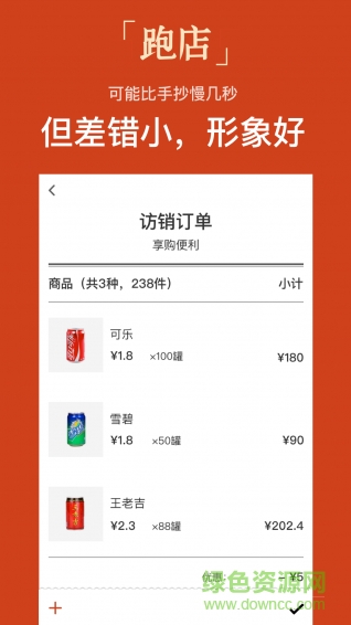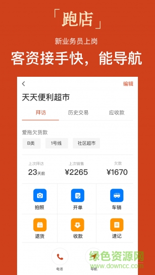 跑店app是一款专门为销售人员打造的智能销售业务管理软件,能够为销售人员的日常销售业务提供极大的便利,客户信息的管理,日常订单的记录等等,能够让用户更加直接的了解到自己的业务情况,需要的用户快来绿色资源网下载吧!