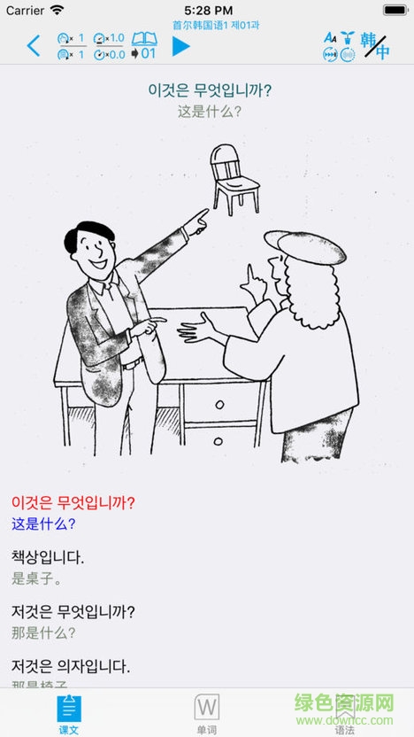 首尔韩国语app是一款收录了韩国语教材四册的韩语学习软件,将课本装进手机,搭配标准的发音和联系,让你更快的掌握首尔韩语,辅助你更好的学习,绿色资源网独家推荐!