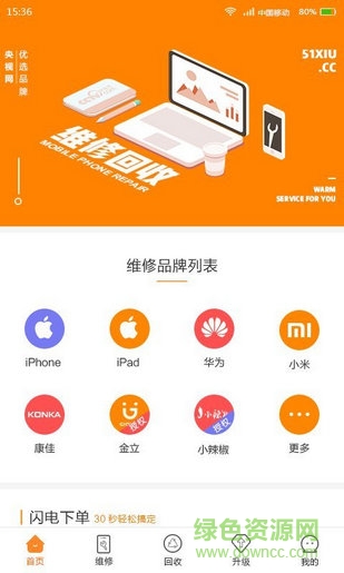 51修手机维修靠谱吗?51修手机维修平台是一款能够为用户提供手机维修服务的软件,直接网上免费预约,直接上门服务,同时支持多个不同型号的手机维修,能够为用户的手机维修提供极大的便利,需要的用户快来绿色资源网下载吧!