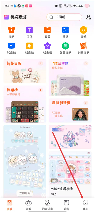 1、打开搜狗输入法装扮商城界面,点击导航栏我的选项,进入个人中心页面。