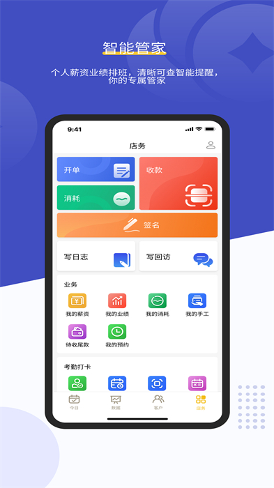 美克拉(员工版)是一款适合美业工作人中使用的应用APP。它是集个人排班、日常考勤、客户档案管理、工资统计、仓库盘点等日常美业工作于一体的管理软件。通过它,美业工作人员可实现手机打卡上下班,手机记录业绩变动,查看工资明细、客户档案,还可以通过手机进行产品培训,了解公司各项制度通告等。是一个多功能的美业员工操作平台。美克拉(员工版)权限受美克拉云商分配,通过与云商系统的对接,实现总店与分店及手机端员工一体化的互联网管理。员工通过使用此APP,可自主了解个人考勤、工资等信息,实时接收公司各项信息传达,自主维护个人客源等,真正让美业员工自己当家作主,实现互联网下的高效管理。
