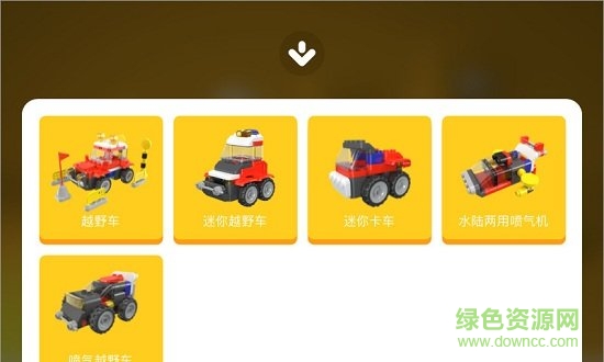 3、“葡萄积木”是一款”百变布鲁可”系列科技积木玩具配套推出的移动应用。在“葡萄积木”中,有数量众多的积木车辆的三维模型,颜色丰富,模型制作精美。