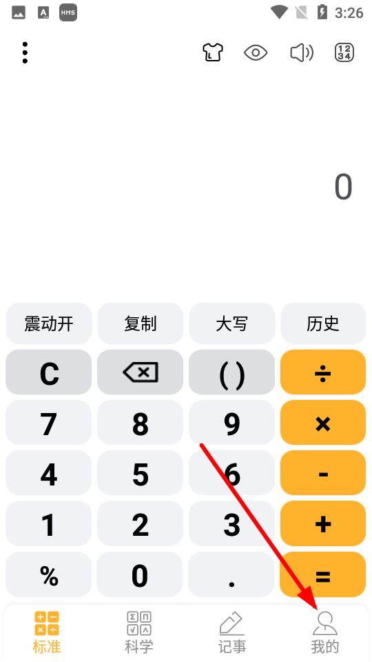 1、打开科学计算器,点击底部导航栏最右侧的我的选项,进入个人设置页面。