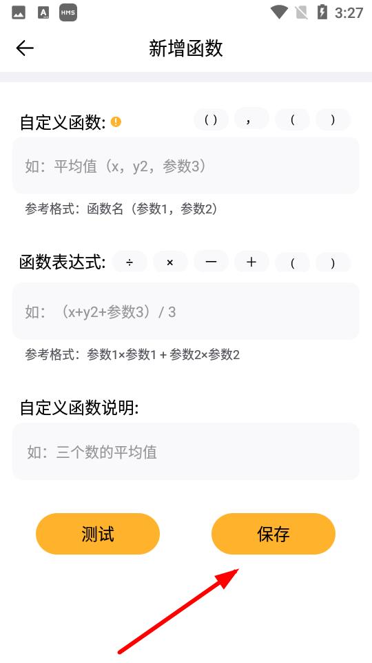 4、填写完成后,点击保存按钮,即可完成自定义函数的设置,后续可在计算器中使用该自定义函数。