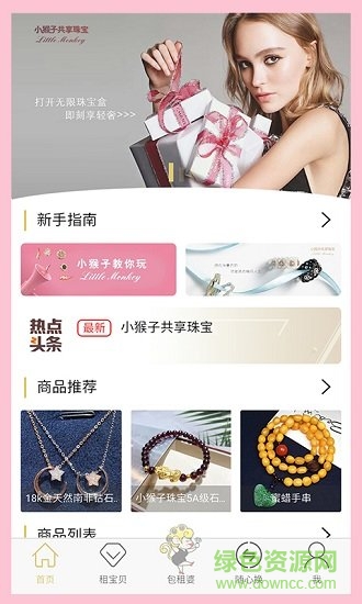 小猴子app是专为喜欢珠宝的用户提供的一款珠宝共享和售卖的服务型软件,专业的珠宝大师为你鉴定珠宝的真伪和价值,让你对珠宝有个准确的价位评估,在这里你即可以租借你喜欢的珠宝首饰,也可以选择直接购买,而且商品都由官方指定认证的,可以放心的租借,安心的佩戴,感兴趣的朋友就快来绿色资源网下载体验吧!