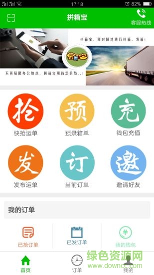 拼箱宝软件是一款集装箱物流服务app,支持在手机上找集装箱和找车,还可以查看车辆实时的定位信息和历史行程轨迹,对于车主来说还可以及时抢单,欢迎有需要的朋友到绿色资源网下载使用!