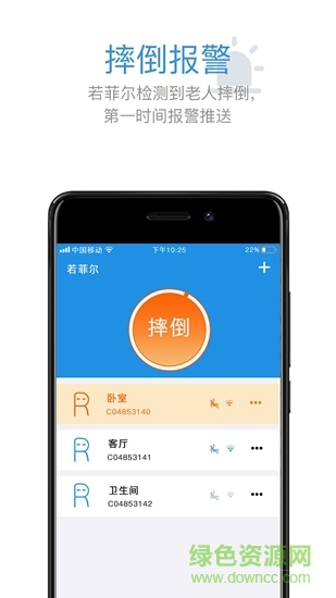 摔倒报警:若菲尔检测到老人摔倒时,会以App推送+铃声+长振动的方式通知到您;