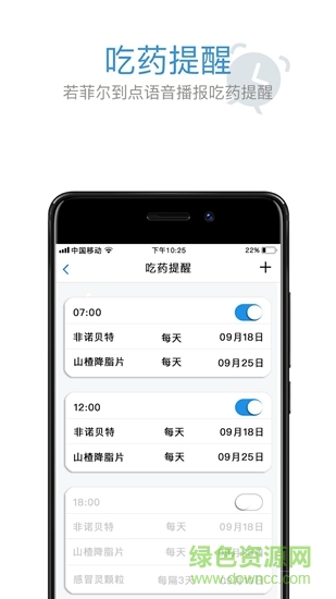 吃药提醒:您在App设置好吃药时间,若菲尔到点会智能语音提醒老人吃药;