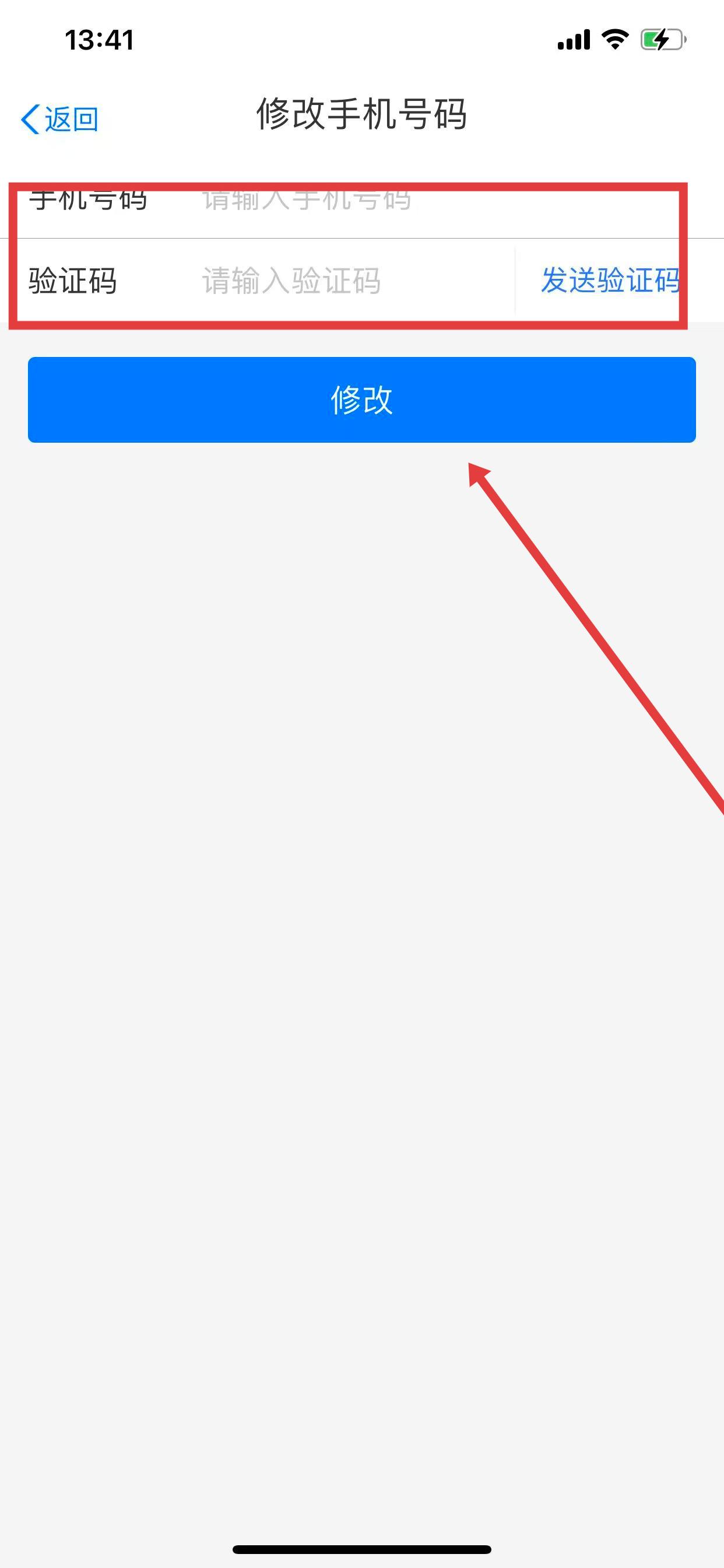 4、在修改手机号码页面,输入新的手机号码,填入验证码框,点击修改按钮完成手机号更改。