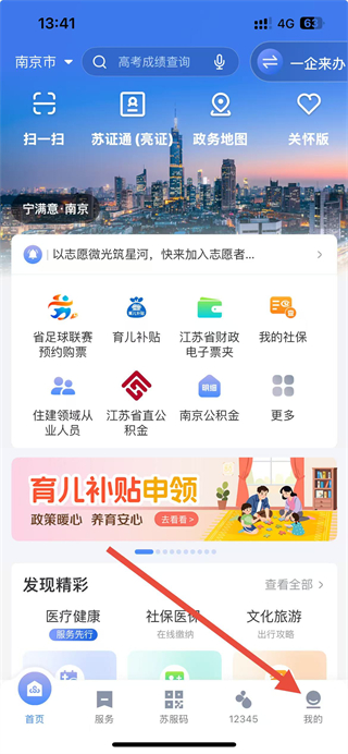 1、打开苏服办App,点击底部导航栏中的我的选项。