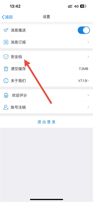 3、在设置页面点击安全码选项,进入安全码设置页面。