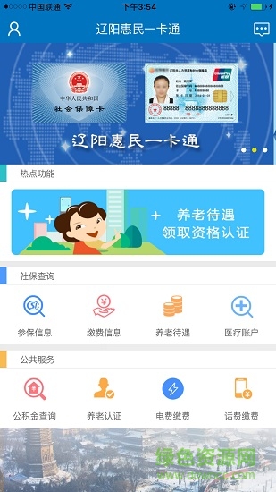 辽阳市惠民一卡通是基于社会保障卡实名用户的集人社缴费查询、养老待遇领取资格认证、公积金查询及煤水电缴费等多政务领域为一体的互联网+政务服务产品。打造成为最方便、最快捷、最智能的辽阳本地化服务好帮手。