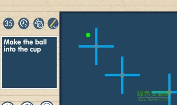 让小白球顺利的达到杯子中的考验,各种障碍的物件拉长滚动的长度