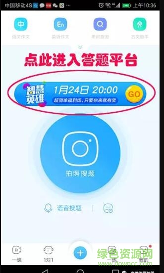 2.下载安装后进入作业帮主界面,会在中间看 到宣传广告图片,点此进入。