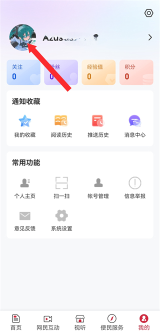 2、在个人页面点击头像的区域,进入账号管理的页面。
