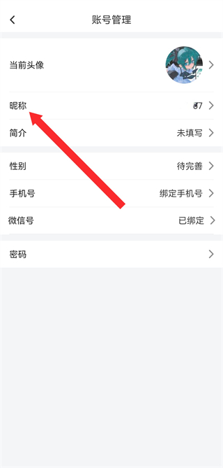 3、在账号管理页面点击昵称的选项,弹出修改昵称的窗口。