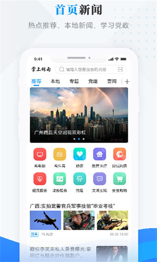 1.了新闻、直播、服务、等栏目,整合了区域内网站、微信、微博、短视频等自媒体和部门、社区、街道政务服务资源。