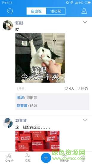“同门曰朋,同志曰友”,自由说查看校友动态,活动聚结交共同兴趣爱好的校友!