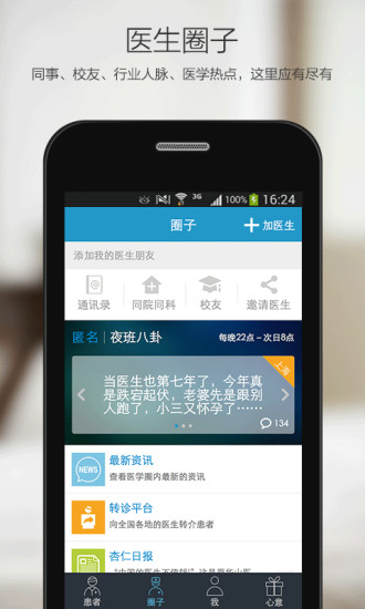 杏仁医生app是为医生量身打造的一款手机应用,分隔医生的工作和私人空间大大提高了效率。医生用户可以为自己熟悉的患者建一个可以随时管理、记录、跟踪、交流、检索和查看情况的患者群。与qq群和微信群相比更具有专业性、私密性和识别性,您与您的患者可以通过这个应用进行交流,可以选择性成为某些熟悉患者的私人医生,患者少而优,患者由您选,免费收费由您定。可以在保密手机号和微信号的同时,连接自己感兴趣的患者,提升患者治疗依从性,从而拥有更多收获。