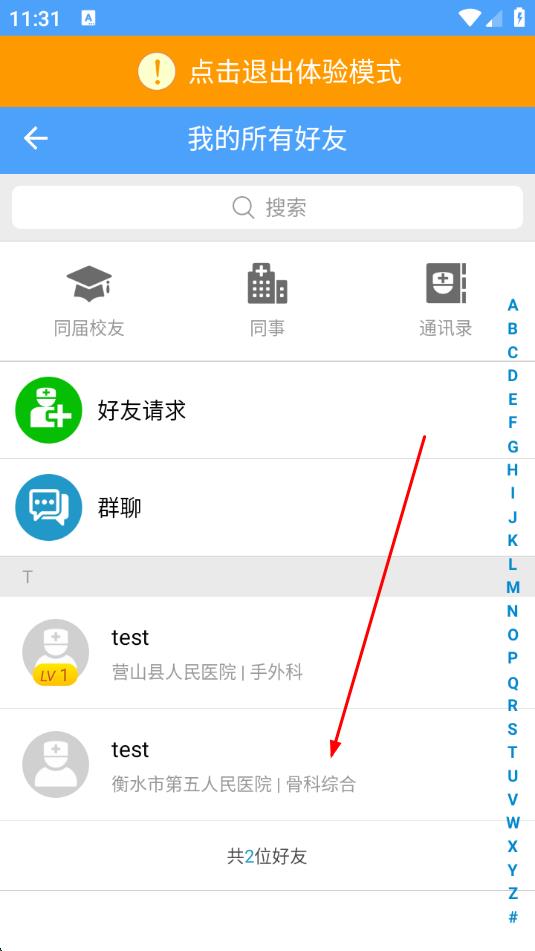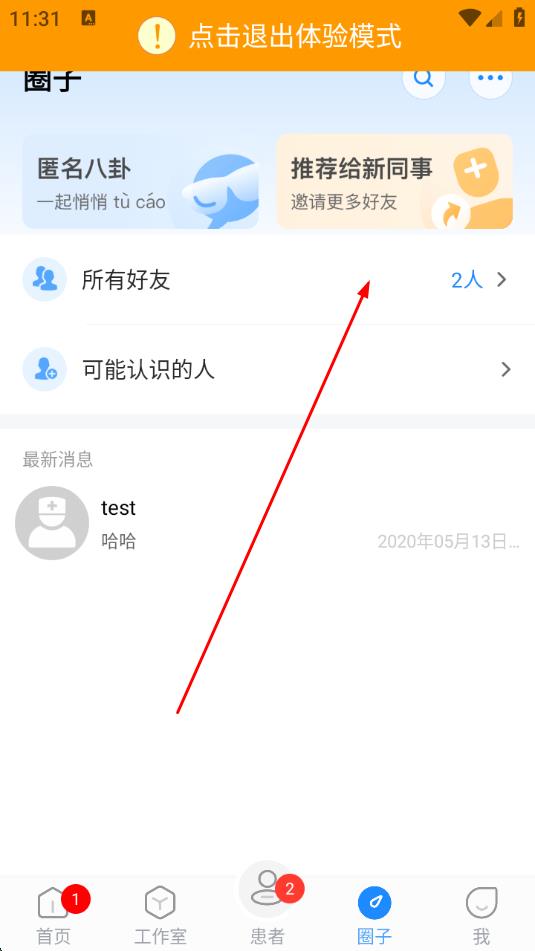 3、在好友列表里,选择你想要沟通的医生好友,点击对方头像或名称。