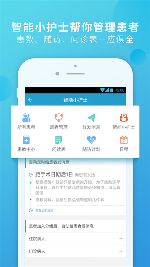 患者只需微信关注杏仁医生微信公众号,医生便可通过APP对患者进行沟通与管理;
