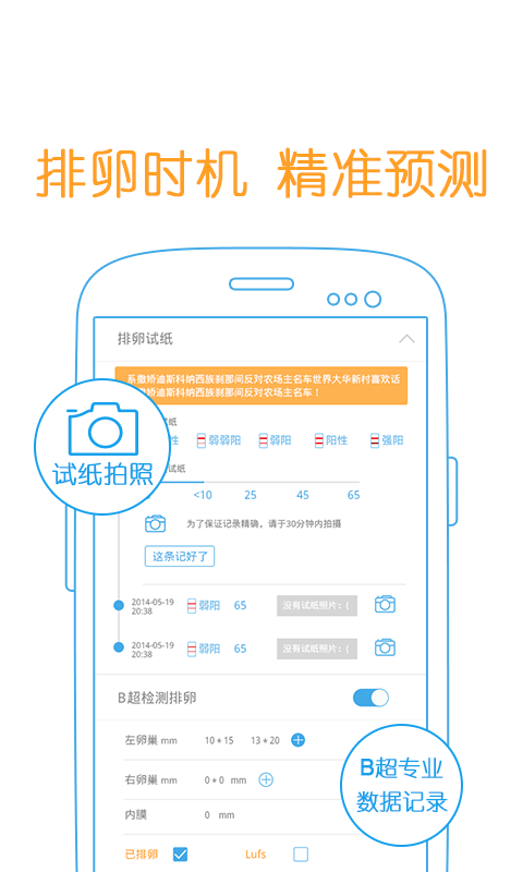 【测排卵】 专业B超监测、试纸拍照记录,智能分析、永久储存,满足备孕记录全需求;