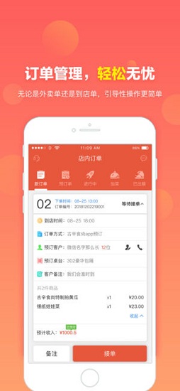 古辛食尚商家版APP是古辛食尚平台推出的商家管理端之一,是商家入驻古辛食尚平台时使用的管理软件,主要功能是接受并处理外卖订单,到店订桌订单,以及处理催单、退款等订单信息,并能够快捷、轻松的管理您所有店铺信息,让你轻松接单,生意无忧。