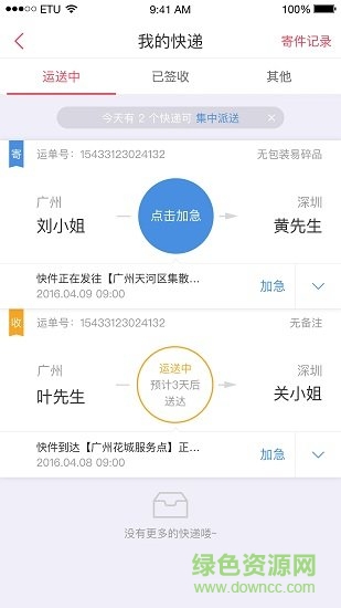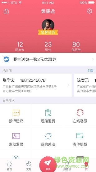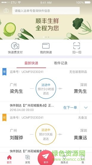 服务点:查询及关注,还可地图导航;快件寄来时,手机轻松选择服务点代收。
