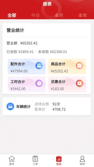车途无忧商户端是一款为商用车服务门店量身打造的综合管理系统。为门店提供店面展示、电商销售、库存管理、营业数据、会员服务等为全方位服务,让经营管理不再难。在数据自动统计功能下,门店每日营业额、车辆接待次数非常直观显示,本周的、本月的门店营业收入数据可以随时查看。