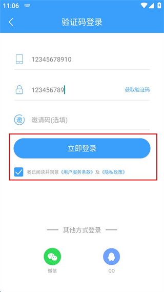 4、勾选已阅读并同意相关条款的选项,点击立即登录按钮完成账号登录。
