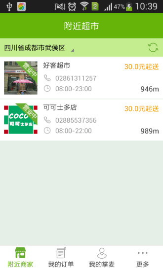 掌麦是超市行业微距离点购平台的先行者,专注超市O2O线上点购平台,以方便用户,盈利超市为宗旨,基于地理位置在移动设备上呈现最近的实体超市,用户可以享受在线下单,超市免费配送,货到付款等便捷服务。