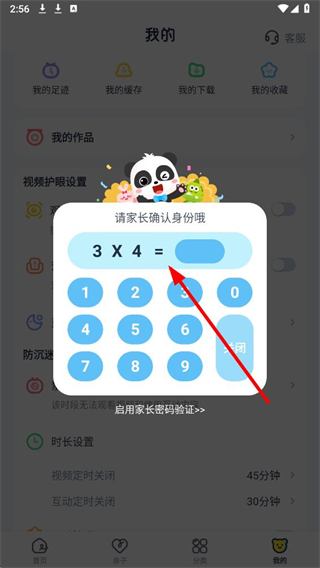 3、触发家长身份验证弹窗后,完成数学运算题的验证,通过后即可进入禁用时段的设置页面。