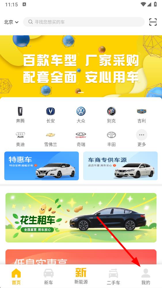 2、在进入到花生好车首页中,可以点击下方我的按钮,进入我的主页。