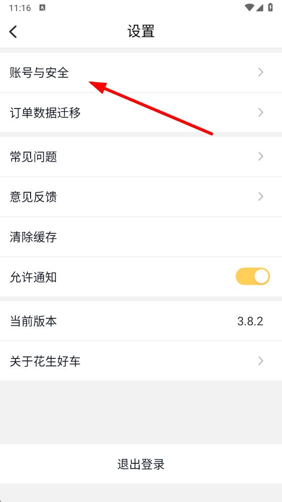 3、在设置界面中,点击账号与安全选项,进入账号与安全相关设置页面。