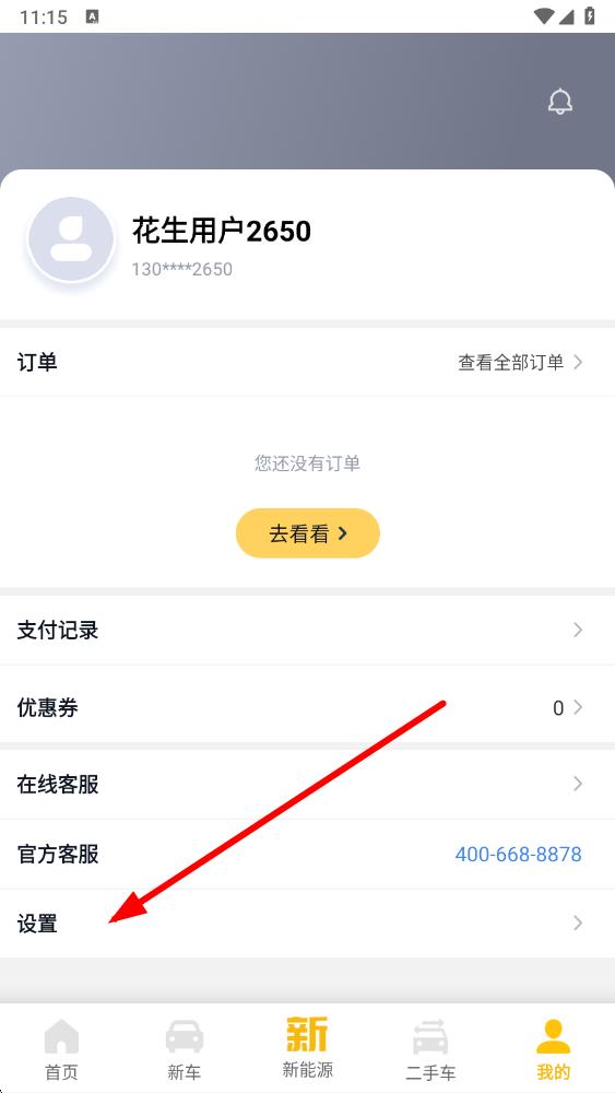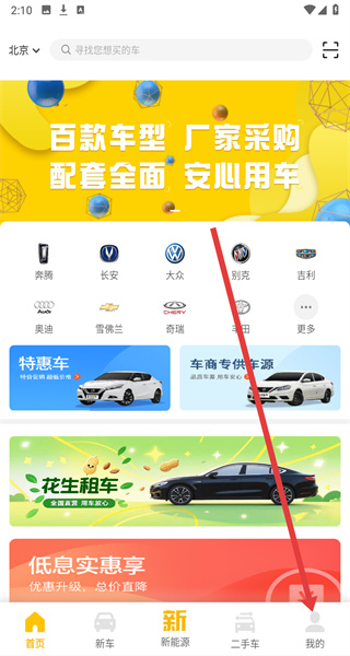 1、打开花生好车app,在首页点击底部导航栏最右侧的我的按钮,进入个人页面。