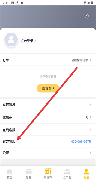 3、在进入到我的主页后,若遇到问题可以点击官方客服选项,进入联系客服解决。