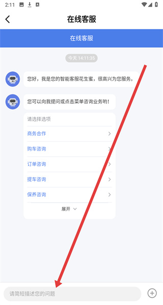 4、进入到在线客服页面后,点击下方输入框即可开始输入需要咨询的内容。