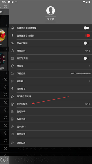3、在右侧弹出的菜单栏中,找到并点击青少年模式。