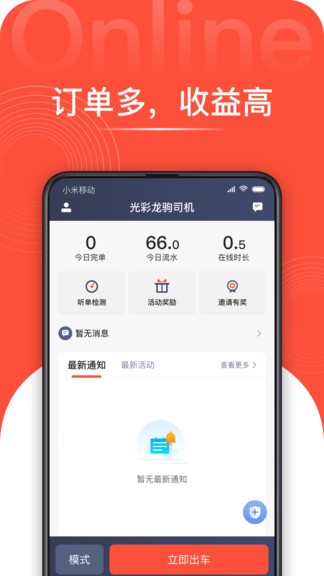 3、在线听单,拥有着独特的接单功能打造能够让系统为你自动的进行听单,接收各种各样的订单.