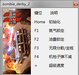 启动游戏运行僵尸德比2五项修改器,热键开关修改项.