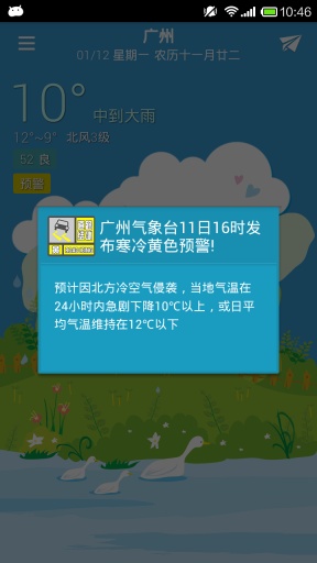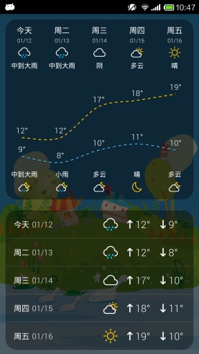 2.可爱的天气动画风格,贴心的天气预报提醒