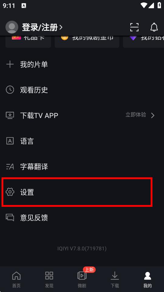 1、打开爱奇艺APP点击我的,进入个人界面点击设置。