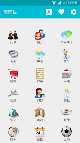 1、提供越南日常生活用语,在不同的场景下能够尽情的学习。