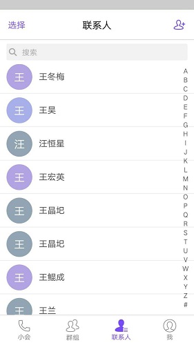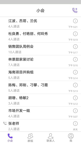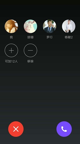 从通话记录或群组可直接发起会议,发起会议前可删减或添加成员。