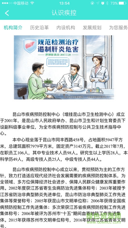 昆山智慧疾控是一款针对昆山地区打造的掌上医疗疾控预防app,疾病预防知识宣传普及,健康问题线上问诊资讯,有效预防疾病健康生活。快来绿色资源网下载体验吧!