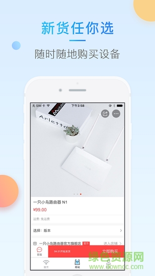 小鸟WIFI手机版是一只小鸟路由器的控制端,使用app用户可以在线管理路由器,查看网速、在线设备,支持踢除用户、限速等功能,轻松管理设备,还可以线上购买路由器,欢迎来绿色资源网下载!