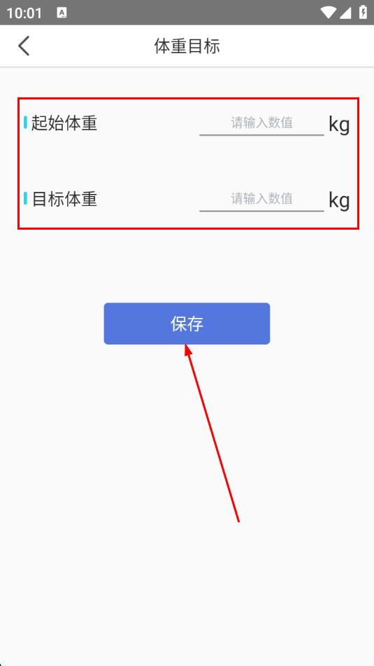 3、在起始体重和目标体重输入框中输入对应的数值,点击保存按钮。