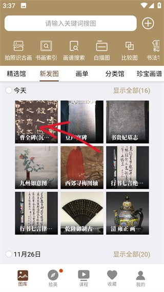 我们收集了从“晋代”到“当代”的海量极品书画资料,图片清晰无暇,色彩准确,绢丝可见,抚之如观实物。